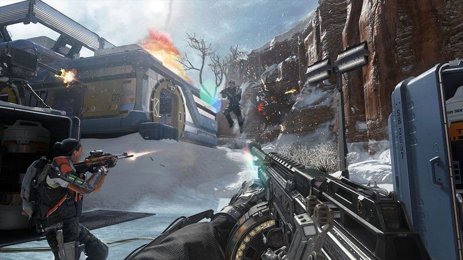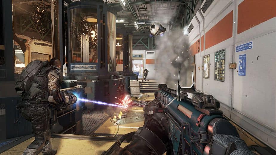 Advanced Warfare, like the other Call of Duty titles, is presented in a first-person shooter perspective. The game features several significant changes; unlike other installments, Advanced Warfare does not use a traditional heads-up display (HUD); instead, all information is relayed to the player via holographic projections from the weapon equipped. The general gunplay remains unchanged, apart from new mechanics, such as ‘Exo’ movements. These Exo movements are performed from the Exoskeleton, which allow the player to boost, dash, and sky jump. The game is the first in the Call of Duty series that allows the player to choose differing types of conventional weaponry; for example, the game features regular conventional firearms, but the player can choose to use laser or directed energy weaponry, both of which have differing attributes. In addition to Exo movements, the game features different Exo abilities, such as Exo Cloak, which allows players to turn transparent for stealth for a period of time.